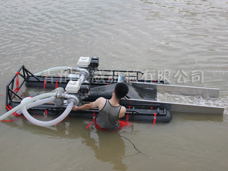 该设备抽沙系统采用新型结构,原料抽取过程中物料不流经泵组,不用考虑泵和叶轮的磨损;沙金重选装置为我公司专门研发的橡胶选金垫,沙金提取效率高,可对毛细金、片状金进行回收;适用于中小型矿场、河道、小溪淘金、探矿作业;
