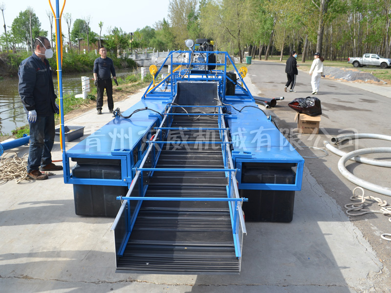 虹吸式淘金船是由机器、高压水泵、浮体、射流嘴、管路、选矿溜槽等构成,具有体积小、轻量化、便于拆装运输等特点,是沙金采选行业内投资少、见效快的新选择;可选装空压机系统,潜入水下进行探矿、选矿操作。