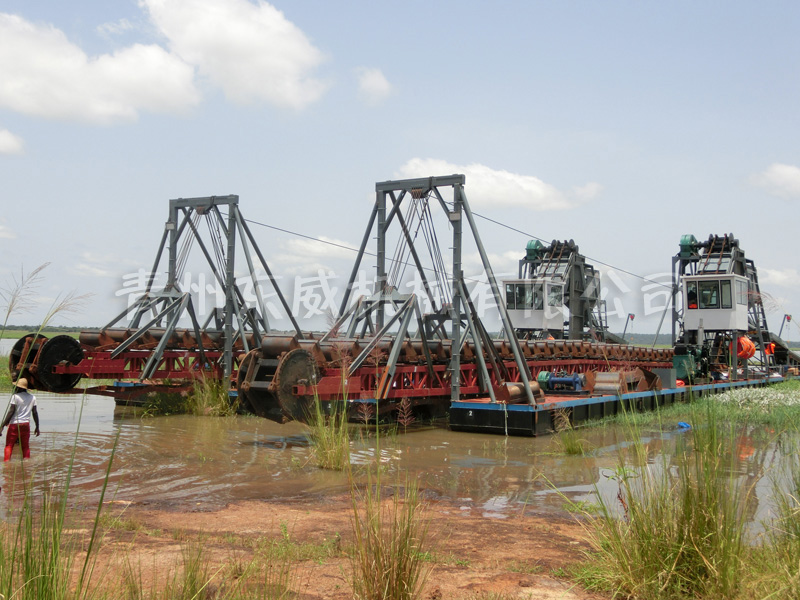 淘金船是一种集采矿作业、选矿作业为一体的水上联合工厂,是一种砂金、铁粉、锡矿、钨矿等重金属开采设备,它包括链斗挖掘系统、选矿及供水系统、废矿及尾矿排弃系统、甲板机械、船体、上部钢构、供电等几个基本系统。