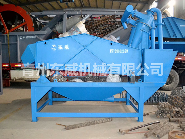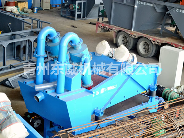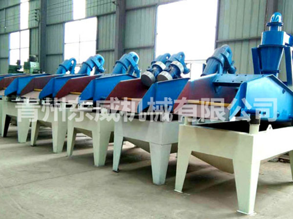 目前现有的洗沙生产线上,绝大部分采用湿法生产工艺,不论采用何种形式的洗砂机,其大的缺点就是细沙流失严重,严重影响沙子的级配,造成级配不合理,细度模数偏粗,大大降低了机制砂的产品质量。过多的细沙排放,还会造成环境污染。为解决上述问题,青州广发(中国)技术部门潜心研发了细沙回收机(细砂回收机),该细沙回收系统吸收国外先进技术,结合本土砂粉实际情况而设计的细沙回收设备。细沙回收机广泛应用于洗沙场、砂石骨料加工系统、玻璃原材料加工系统、人工制沙生产线、选煤厂粗煤泥的回收以及环保工程(泥浆净化)等,可有效解决细沙回收问题。